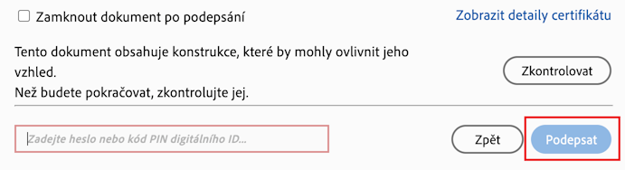 7. Opět otevřete Adobe a vytvořte digitální podpis. V možnostech se zobrazuje připojené zařízení, které vyberete a dáte Pokračovat